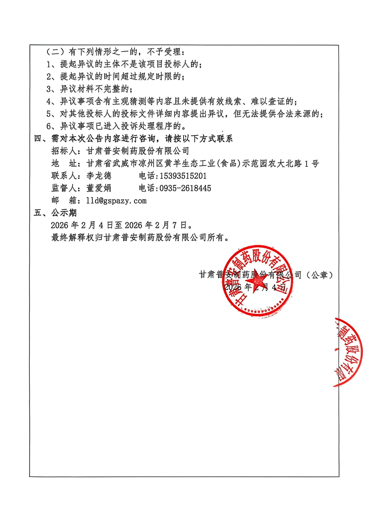 甘肅普安制藥股份有限公司2026年度 宣肺止嗽合劑輔料(蔗糖)評(píng)標(biāo)結(jié)果公示